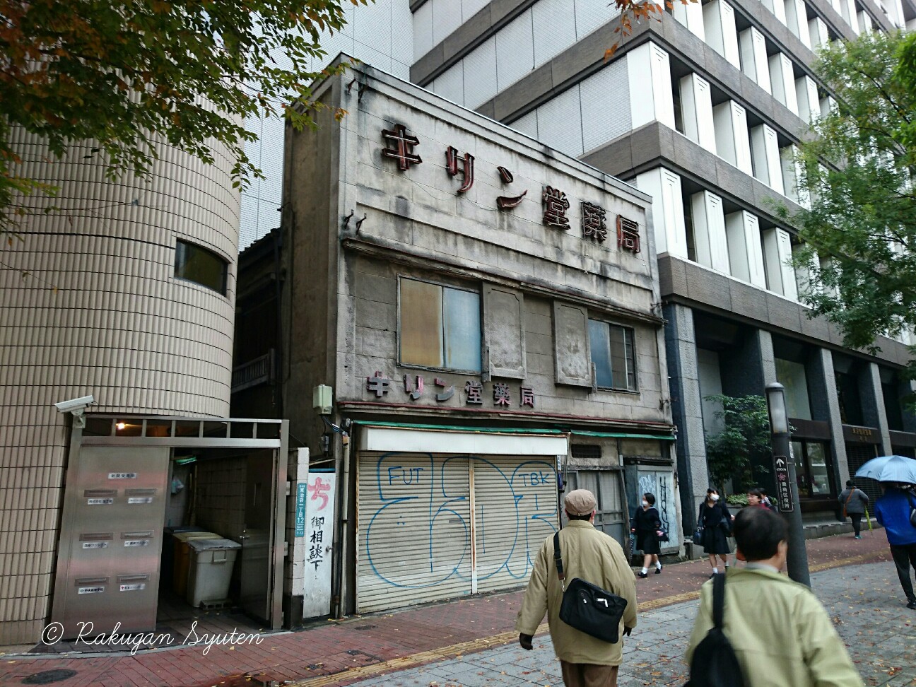『キリン堂薬局』という店名から薬局であったことは容易に推し量られますが、気になるのは古びた佇まい。